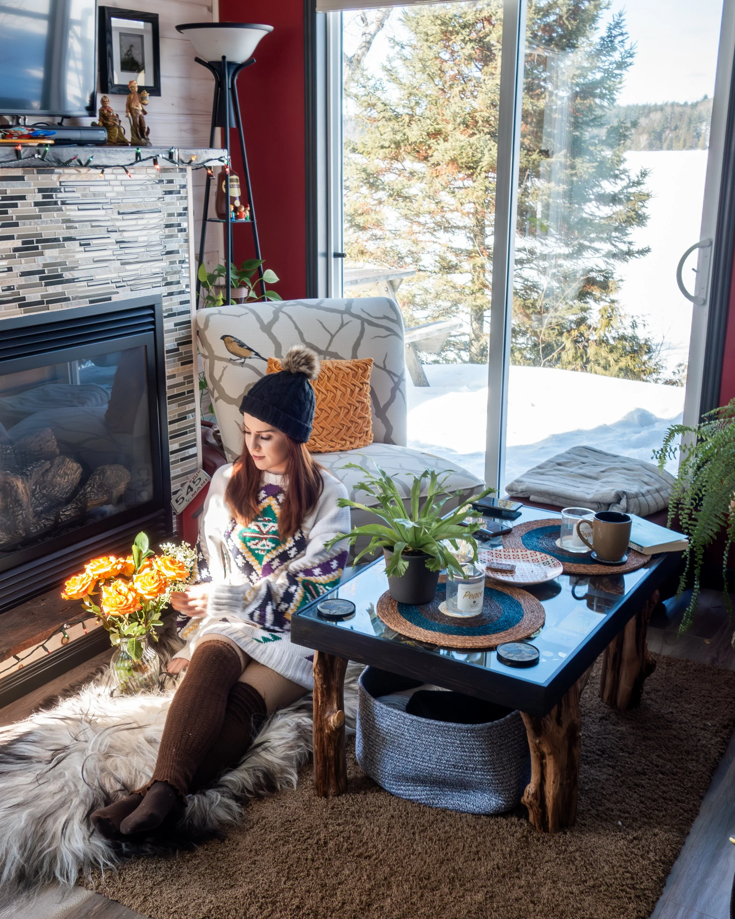 The space itself was intimate, yet also spacious and open. Both bedrooms overlooked the lake, as well as the kitchen and living room (combined into one open concept), which had large windows that allowed the sunlight to infiltrate the room. It was heaven. The living room section, featuring a cozy couch set up and a warm fireplace, was literally beside the windows. If you need a perfect spot for a game night, a Netflix binge, a cuddle up with a good book, or a wine night with your best friends, this is it!